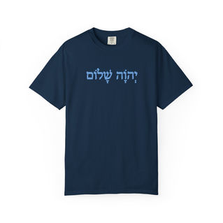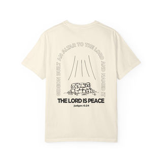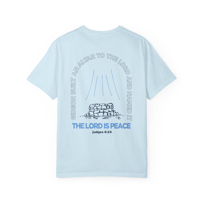 Rooted in Gideon’s sacred encounter and quiet courage, this t-shirt is more than apparel—it’s a wearable altar. The design centers around the ancient word יְהוָ֥ה שָׁל֖וֹם (YHWH Shalom)—The Lord is Peace—etched above a simple stone altar, just as Gideon built in trembling obedience.